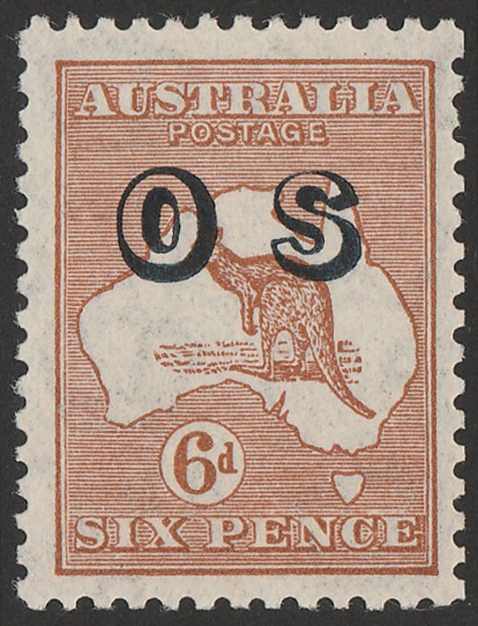 orange perf OS, CTO with variety 'Short Spencer's Gulf' F-VFU. SG O118(var), ACSC 45Abaw(D)i cat $400. (P) (Image1)
