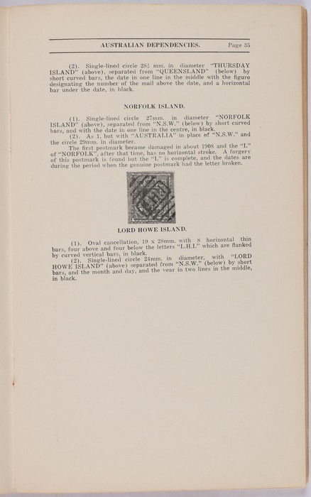 Stamps of the ? (Vol 1) by Collins. 103pgs, pub ca 1925. Semi-specialised work inc Postal Cancellations. Cover stain UL cnr o/w VGC. (Image1) (Image2)