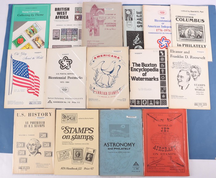 American Topical Association Publication (28 diff) inc Americana on Foreign stamps vols 1 & 2, John F Kennedy, Statue of Liberty, Birds, Holy Family, Horses, Mammals, Philatelic Dudes, Railway Stamps, Space & Women on stamps. Also other publications