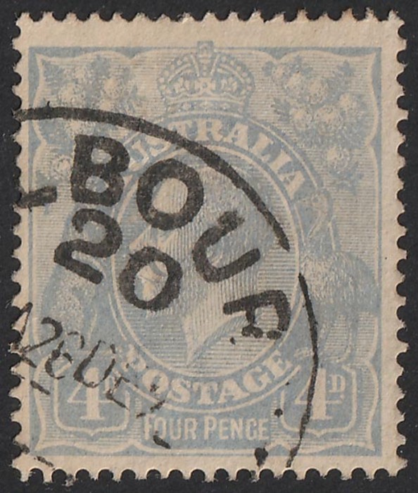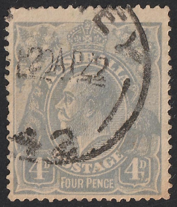 variety 'weeping 4 at right' (2L18). FU. SG 65(var). ACSC 112 c (2) f cat $90. Cds well clear of variety. (Image1)