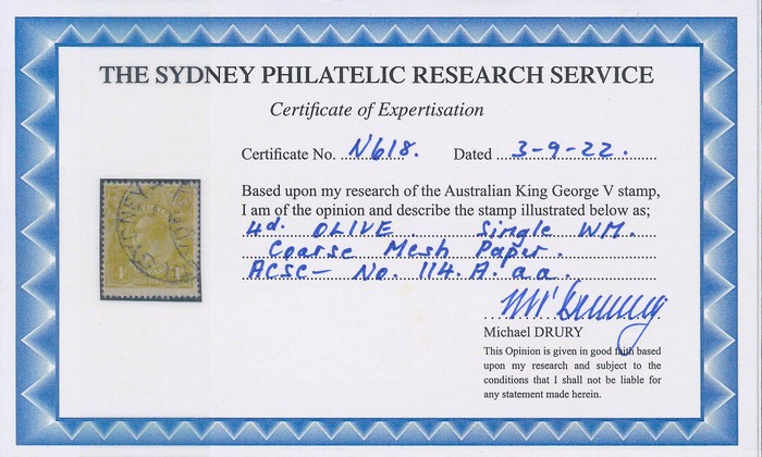 mesh paper. FU, part cds. SG 80(var),ACSC 114Aaa cat $225. 2022 Drury photo cert. (P) (Image1)