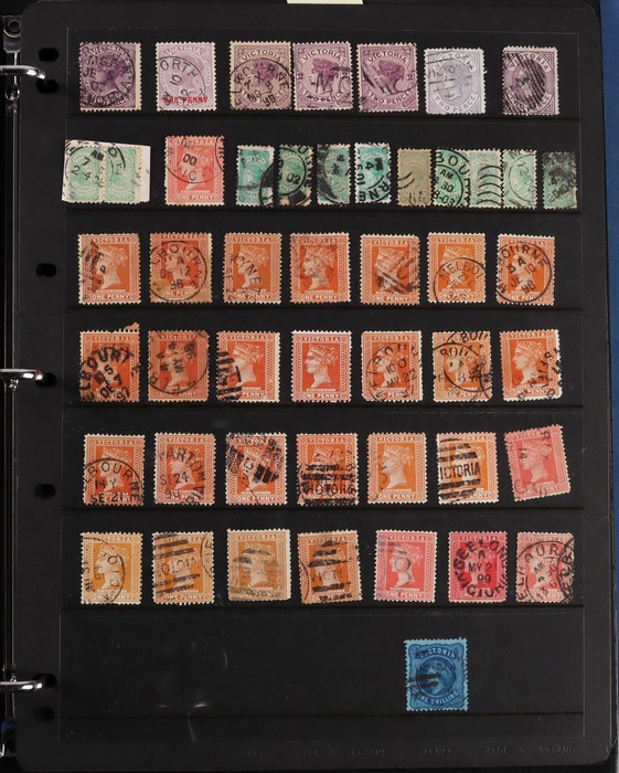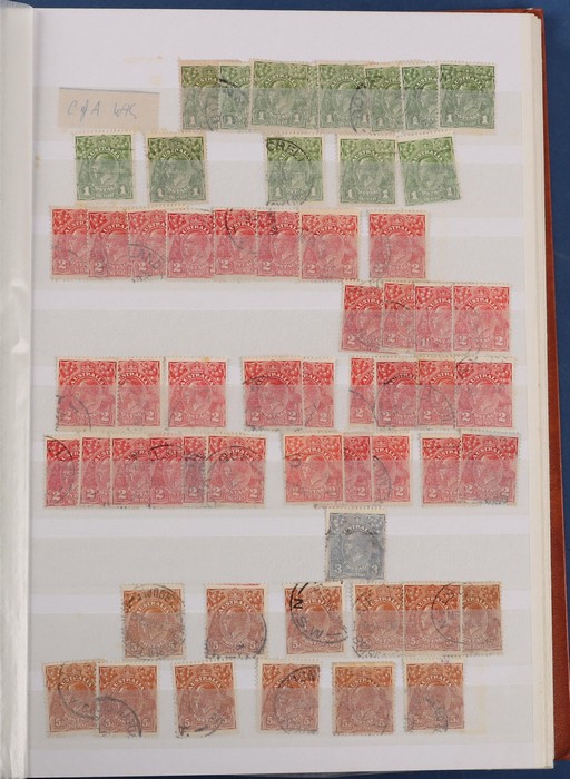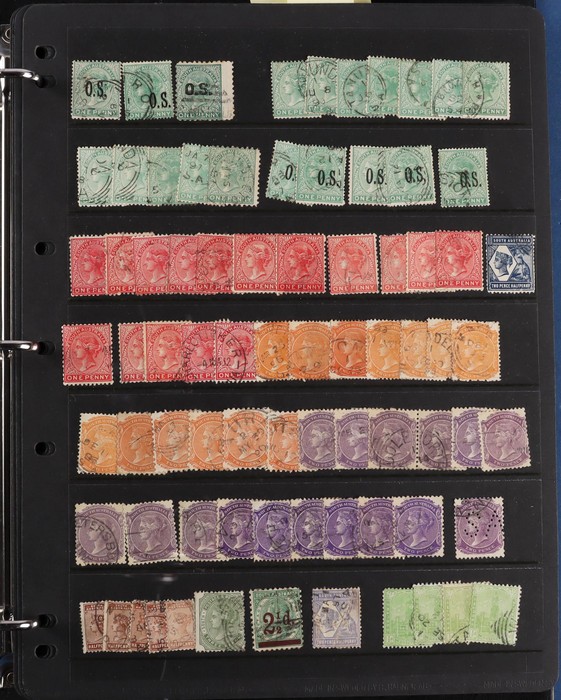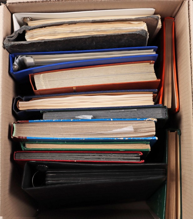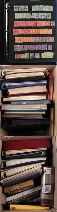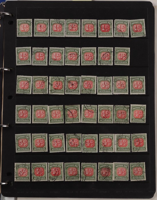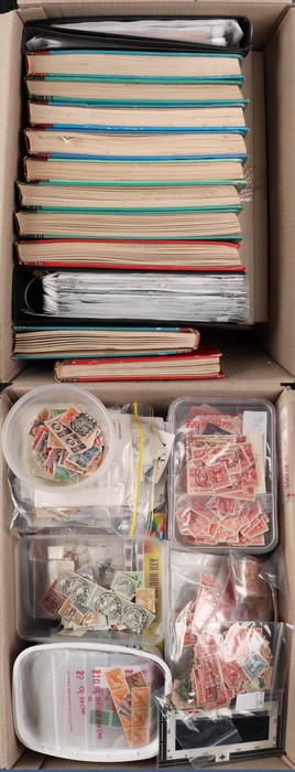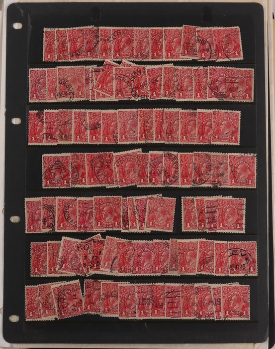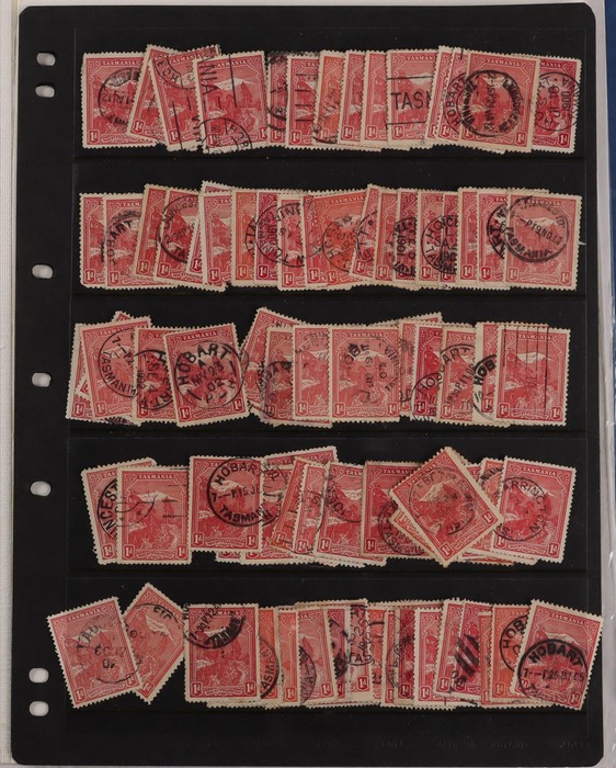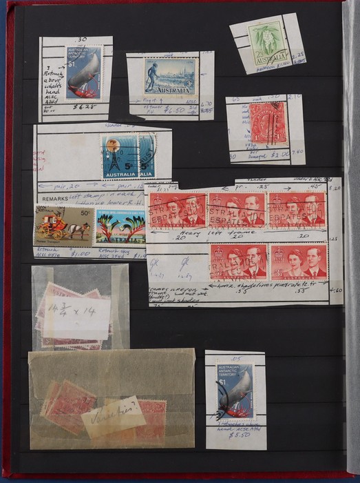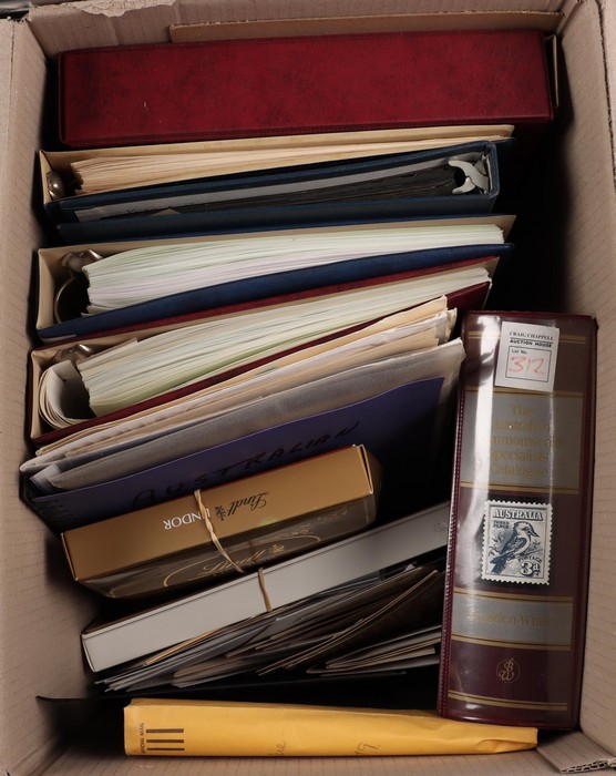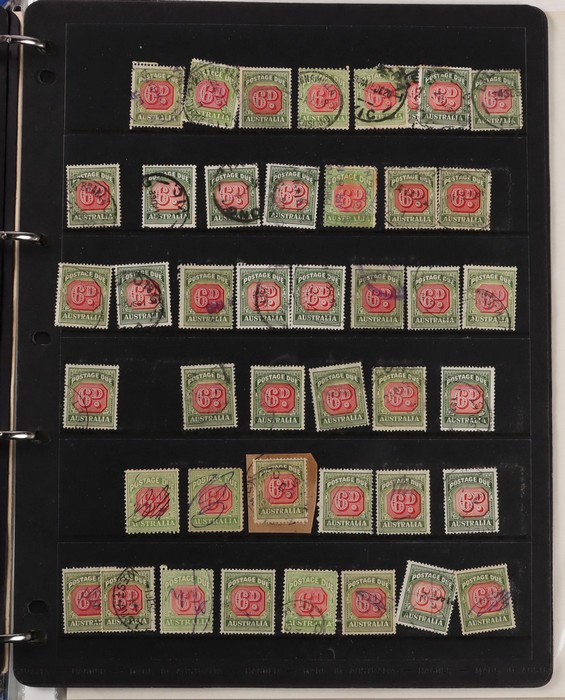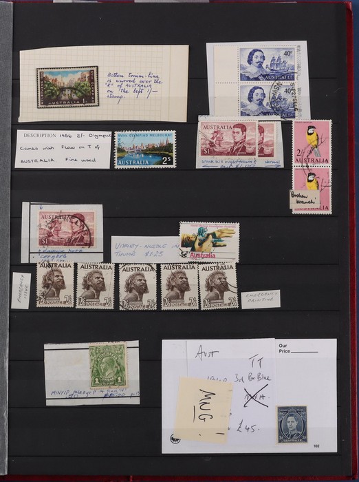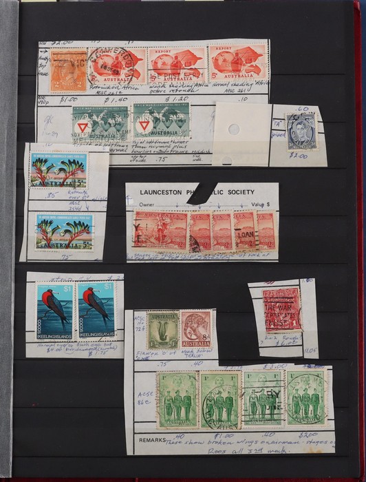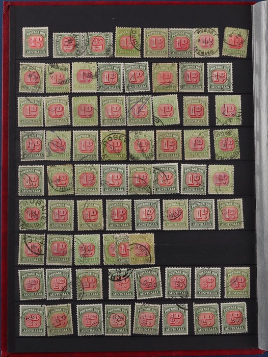 160 image1890s-1980s collection/accumulation in 15 albums, s/books & in envelopes, boxes. Range of all State issues to 1/- (1000+) inc Tasmania Pictorial pmks (100+), some Numeral, pmks not checked. KGV to 1/4 & few Kangaroos in 2 chocolate boxes & bag (1500+), plenty of 1d red inc Die II, Kangaroos to 2/- range of pre-decimals on pages. Noted various flaws inc 1934 3d blue VIC Cent 'flag', 1956 2/- Olympics 'flaw on T' etc. Postage Dues 1915-40s to 1/- (300+). Seven Seas QEII hingeless pages 1953-87. Some decimals inc 20 7c Newspaper Wrappers, some varieties. Seven Seas hingeless pages with some stamps 1913-2004. GU-VFU. Interesting lot for sorting. (1000s) (Image1) (Image2) (Image3) (Image4) (Image5) (Image6) (Image7) (Image8) (Image9) (Image10) (Image11) (Image12) (Image13) (Image14) (Image15) (Image16) (Image17) (Image18)