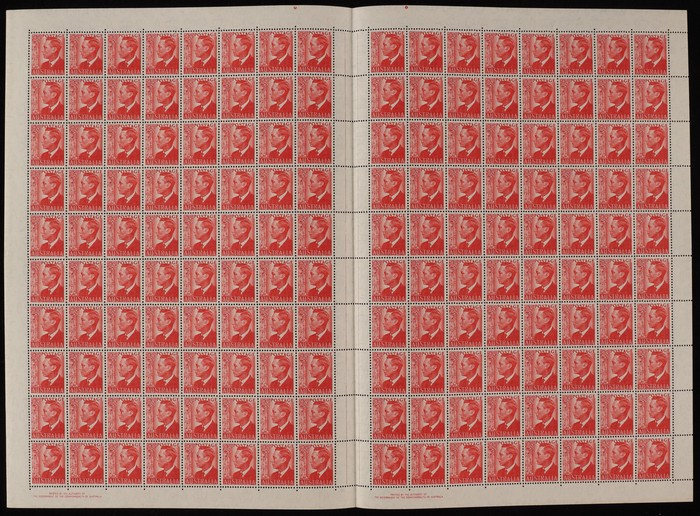 scarlet booklet plate sheet of 144 comprising 24 panes of 6 arranged in 8 vertical columns of 3, toned throughout. ACSC 251ca cat $360. (144) (Image1)