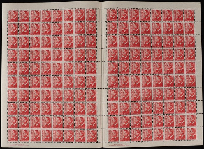 scarlet, sheet of 160 with both Authority imprints. VF MNH. ACSC 251 zj zk cat $340. (Image1)