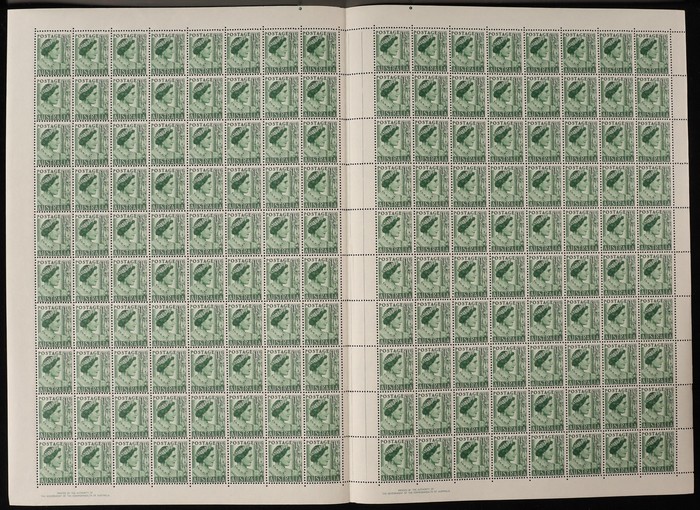 green sheet of 160 with perf-pips at top & both Authority imprint. Couple minor internal perf separation. VF MNH. ACSC 248 bb zc zf cat $375. (160) (Image1)