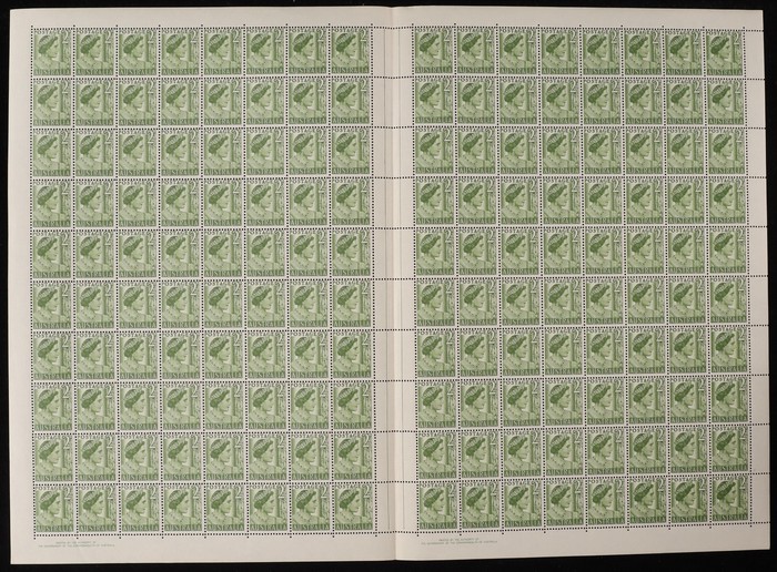 yellow-green sheet of 160 with both Authority imprints. VF & fresh MNH. ACSC 248 zc zb cat $405. (160) (Image1)