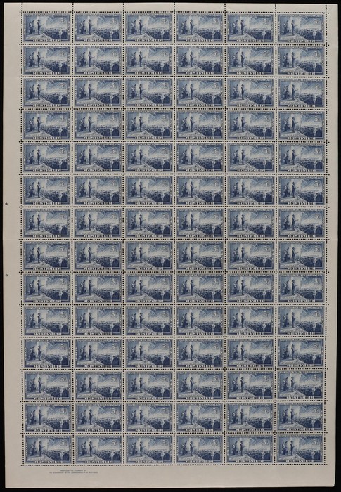 sheet of 84 with Authority imprint al LL cnr. Lower selvedge with central tone plus 4 stamps lightly tropicalised. F-VF MNH. ACSC 283 z cat $190. (84) (Image1)