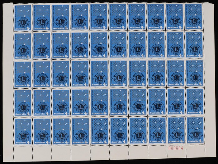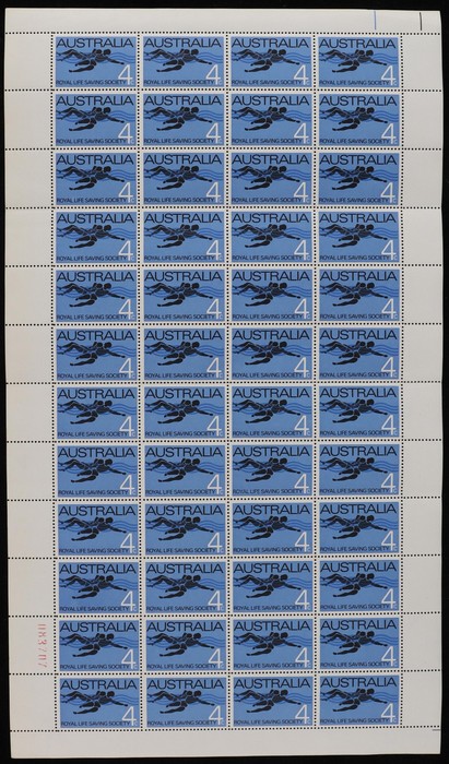 pane of 50 with red sheet number LRC & all 4 varieties inc 'RA of Australia joined' (pos LP 2/6). Some light creasing. F-VF MNH. ACSC 475 d e f g zb cat $108. (Image1)