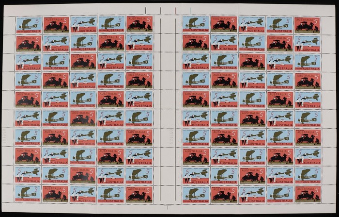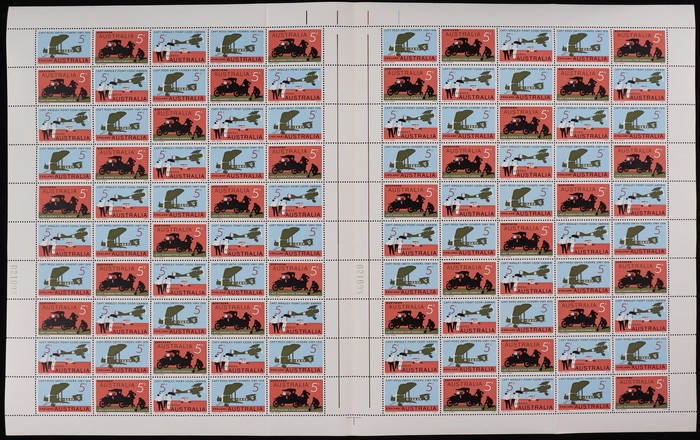 windscreen support' (RP 1/2). Then 2 sheet number blks of 12 & the Autotron gutter blk of 18 are some of the multiples seen. Lightly creased through gutter. ACSC 513, 514d(var)/e/f, 515cb/z/za/zb cat $250. (Image1)
