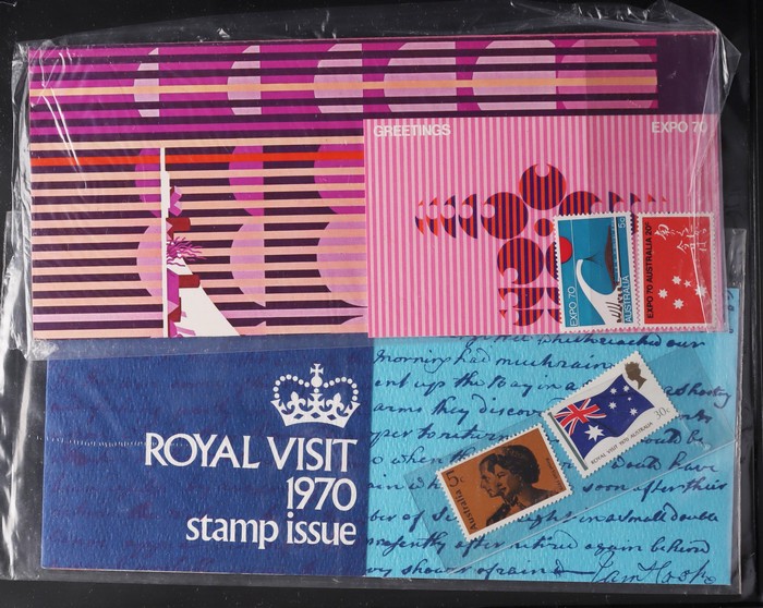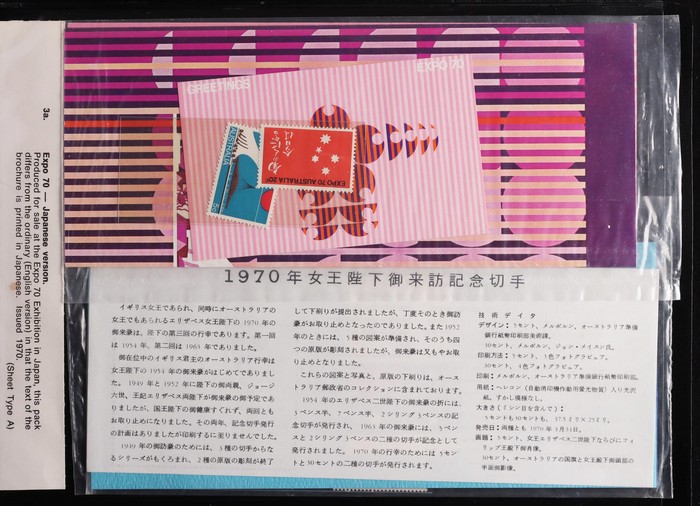 pack with Japanese insert 1970 Expo pack with all Japanese writing inside. Expo pack neatly opened, with Australian only issues for comparison. Retail $200+. (4).
