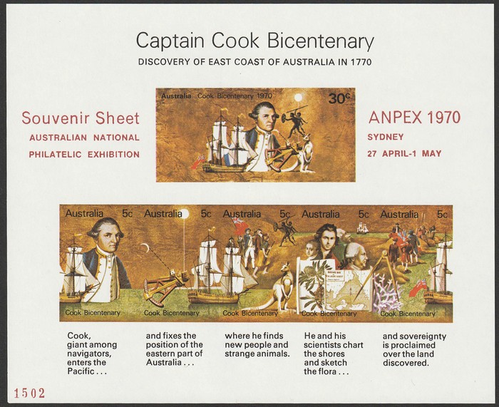M/Sheet with Forged ANPEX opt Number 1502. VF fresh MNH. ACSC 528(var) cat $80. Forgery was produced by Orlo-Smith & was subject to a court ruling that all stock be destroyed.
