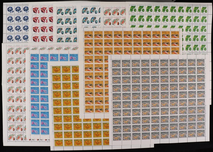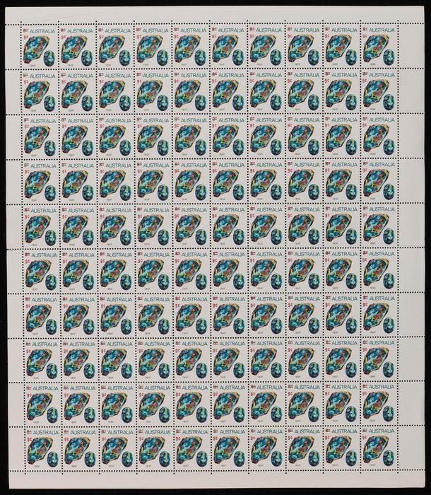 1c-4c & Gemstones set 6c-10s inc 8c/9c comp sheets of 100, plus 7c Agate in 2 distinctive cream/white papers. 11 sheets. V-VF MNH. Unchecked for ACSC listed varieties, cat $220 as basic units. (110) (Image1) (Image2)