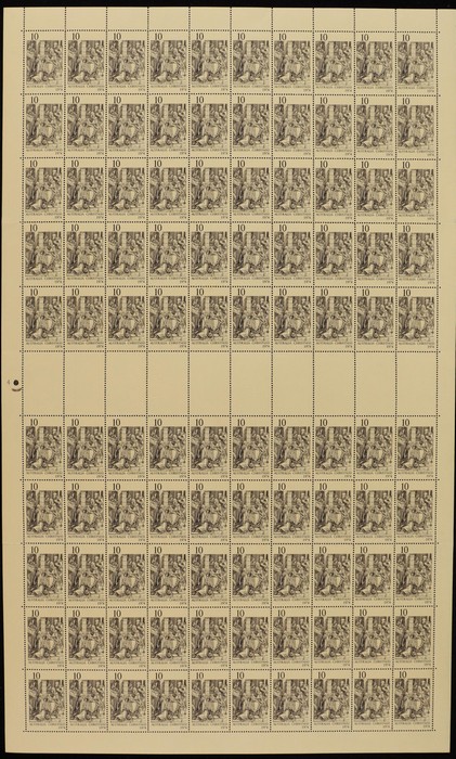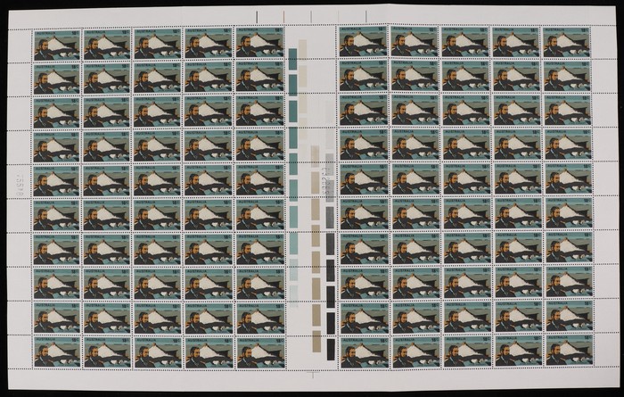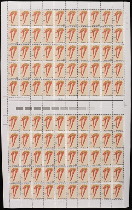 Forrest sheet of 100 with Autotrons at top, both black sheet numbers, variety 'horiz retouch left of Forrest's head' (pos LP 1/2). VF fresh MNH. ACSC 735 d z za zb cat $80.