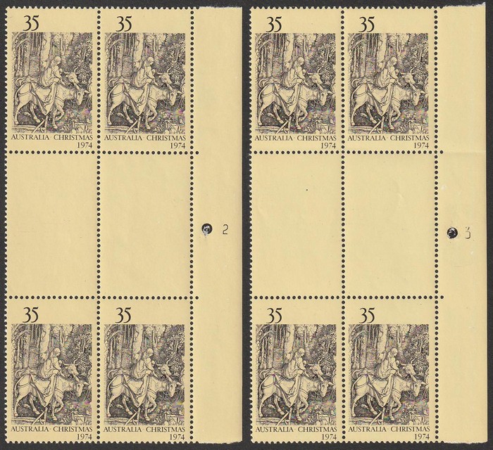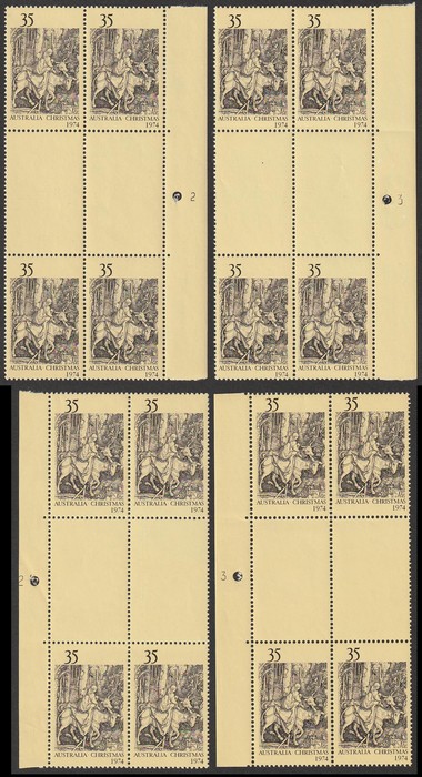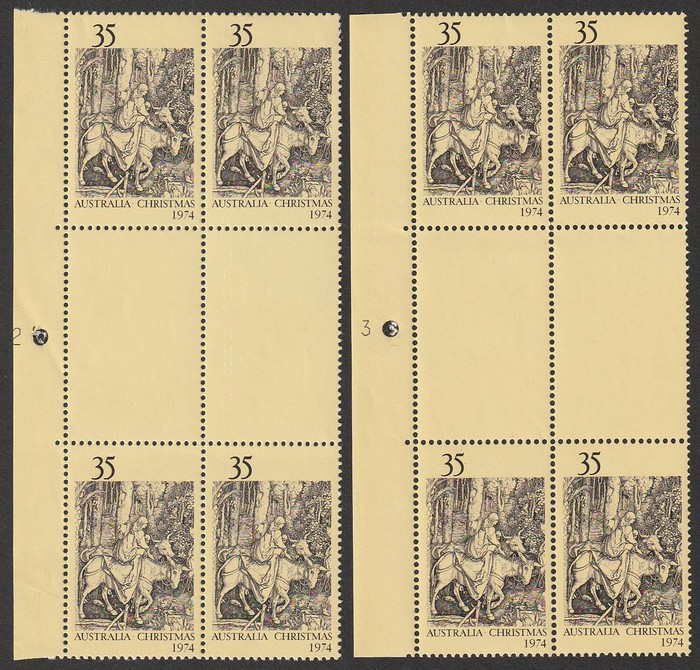 plate numbers 2 & 3 left & right gutter blks of 4. VF fresh MNH. SG 581 var. ACSC 681 z, za, zb, zc cat $300. (Image1) (Image2)