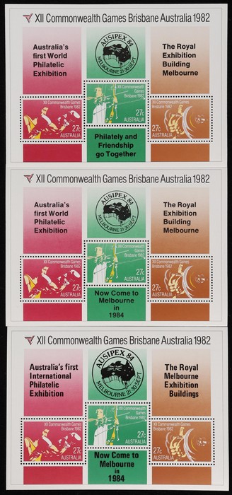 Games M/S set of 5 Ausipex 84 promotional opts. VF fresh MNH. SG MS863(var). Retail $85. (5). (Image1) (Image2)