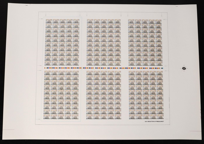 75c 'Sobraon' full imperf printer's sheet of 300 reduced to 43% of actual size -now 300x260mm, plus extra wide margins (total size 440x315mm). VF fresh UN as made.