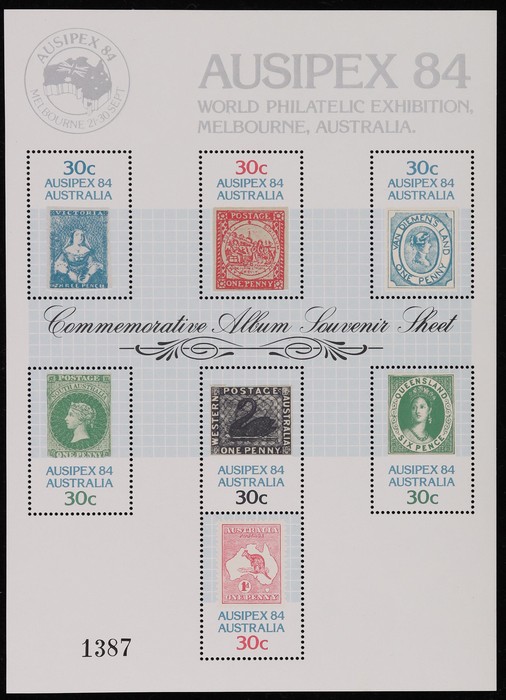 Games M/S with 4 diff Ausipex 84 promotional opts. VF fresh MNH. SG MS863(var). Retail $75. (4). (Image1) (Image2)