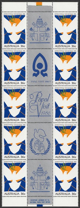 opt 36c Peace gutter strip of 10. VF fresh MNH. SG 1039(var). Retail $22. (Image1)