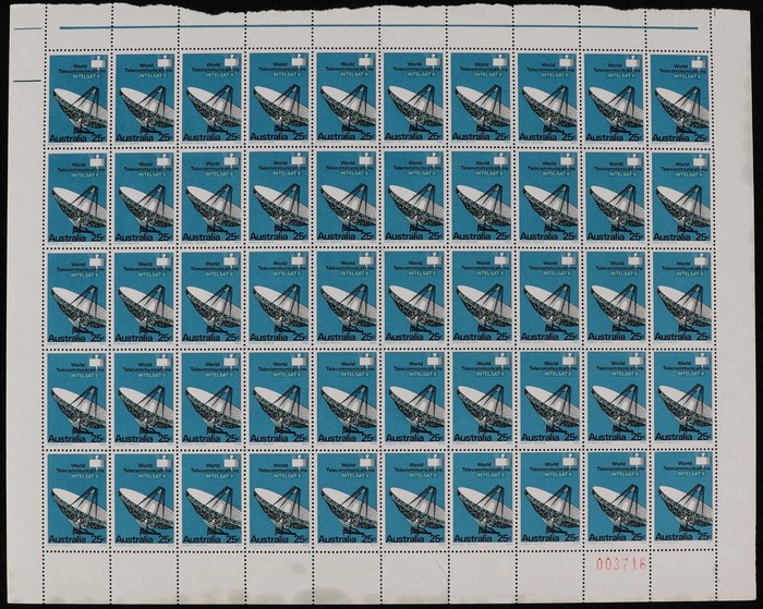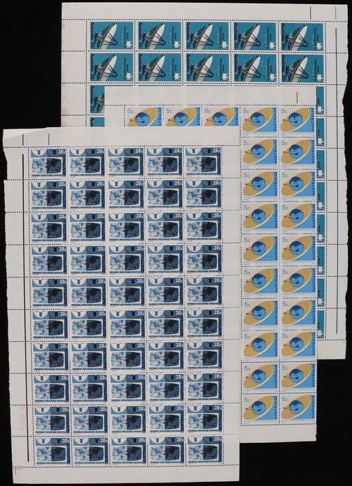 Watch set 5c & 20c, plus 25c Intelsat all in panes of 50. F-VF MNH. SG 417/19 cat £130 = A$260. ACSC cat $250. (150) (Image1) (Image2)