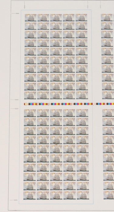 'Sobraon' full imperf printer's sheet of 300 reduced to 43% of actual size -now 300x260mm, plus extra wide margins (total size 440x315mm). VF fresh UN as made. (Image1)