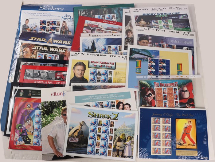 Event Sheetlets) & similar, all diff with Thematics inc Olympics, Soccer, AFL, NRL, Cricket inc Border & Warne, Tennis, Star Wars, Lord of the Rings, Harry Potter etc. Many in original packs or plastics. VF fresh MNH. FV $275 alone. Original PO cost