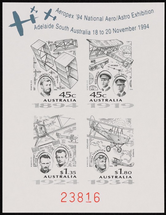 45c-$1.80 black 'plate proof' from Aeropex Exhib. VF fresh UN as made. SG 1475-8(var). ACSC 1763-6(var) -footnote. (Image1)