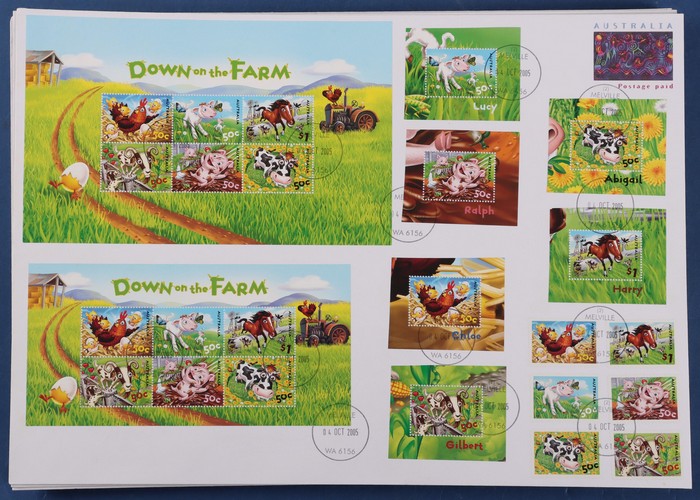 other gutter blks inc 2004 Bridges, 2006 Lighthouses, 2006 Cars, 2007 Gardens etc. Other M/S inc 2005 Creatures of the Slime, 2005 QEII, 2005 Down on the Farm (2 sizes), 2006 Dangerous Wildlife, 2008 Scouts, 2009 Aust Post. Also Treasures from