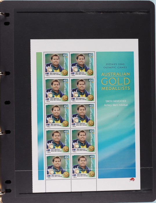 Olympics PO Album with set of Gold Medallists sheetlets. Digital Print with Possum logo at LR (Victoria). FV $72. (Image1) (Image2)