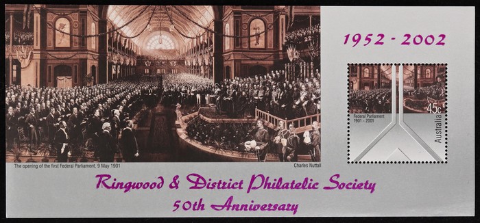 M/Sheet opt Ringwood Phil Soc 2002. VF fresh MNH. SG MS2107(var). Retail $30. (Image1)