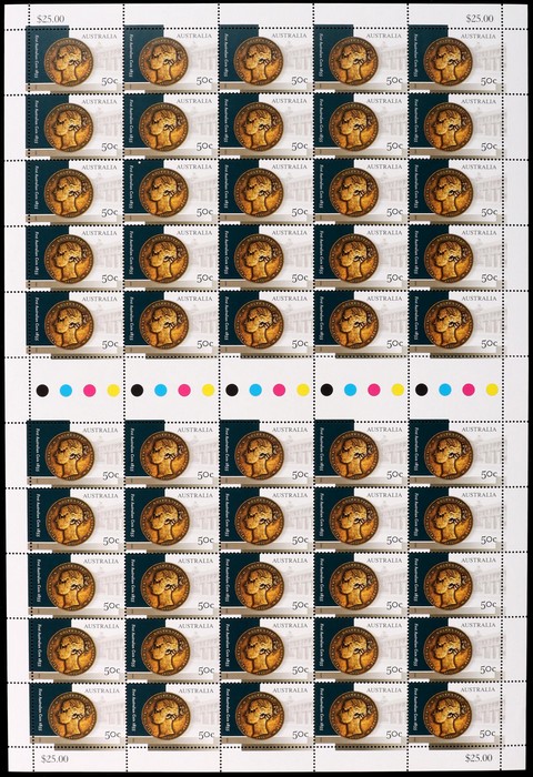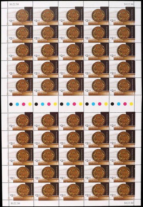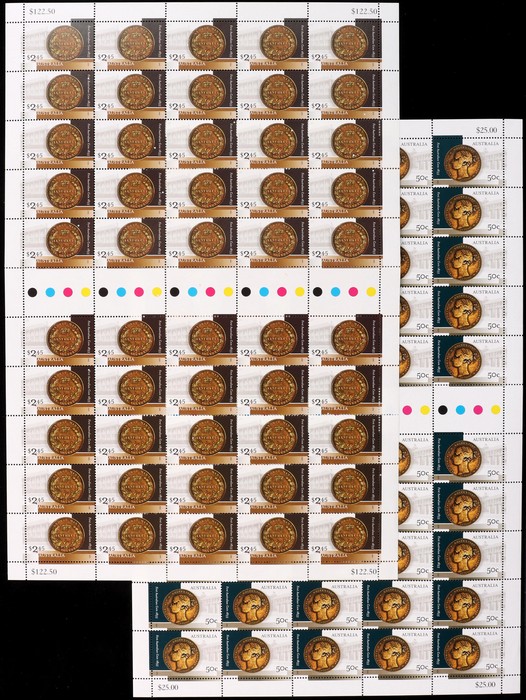 Australian Coin Anniv set 50c & $2.45 sheets of 50. VF fresh MNH. SG 2519-20. FV $147 alone. (2 sheets). (Image1) (Image2)