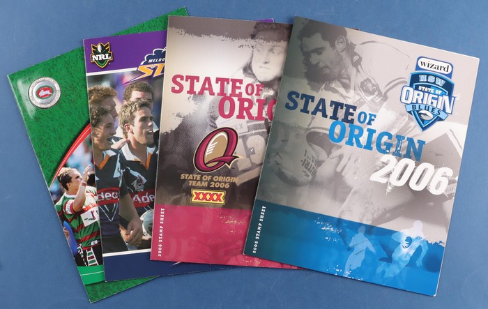 State of Origin NSW & Qld packs plus 2007 Sth Sydney, & 2005 Melbourne packs, total 4 diff 50c sheetlets. VF fresh MNH. FV $20 alone. (4). (Image1) (Image2)
