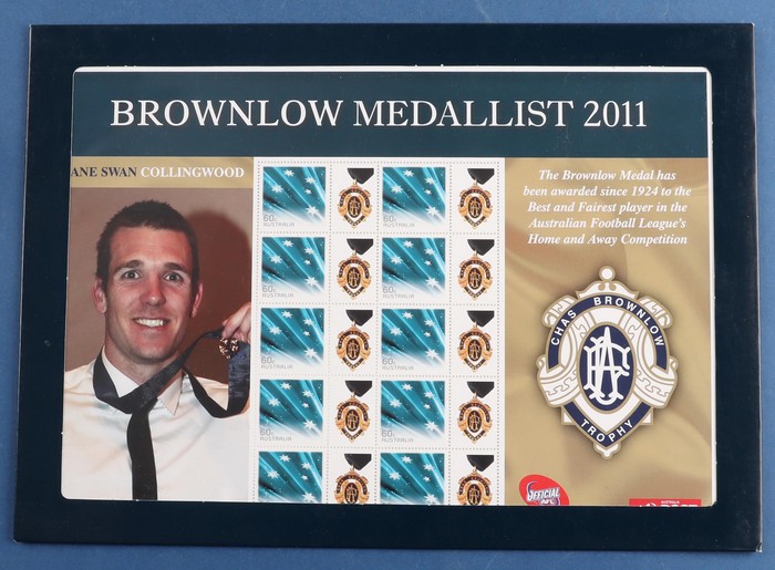 AFL Premiers $5-$6 SES, plus 2011 & '12 Brownlow Medallists. VF fresh MNH. FV $32. Original PO cost $90. (6). (Image1) (Image2)