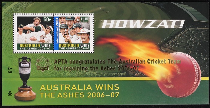 $2.35 M/Sheet opt 'APTA Congratulates?regaining the Ashes', numbered. VF fresh MNH. SG 2738(var). Scarce. (Image1)