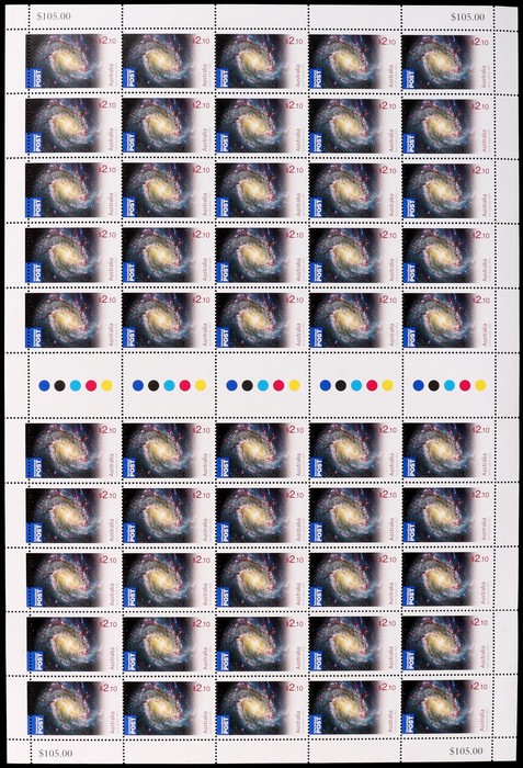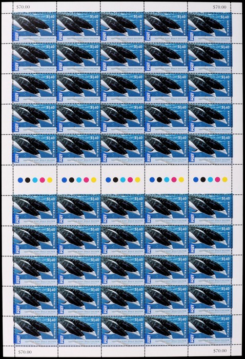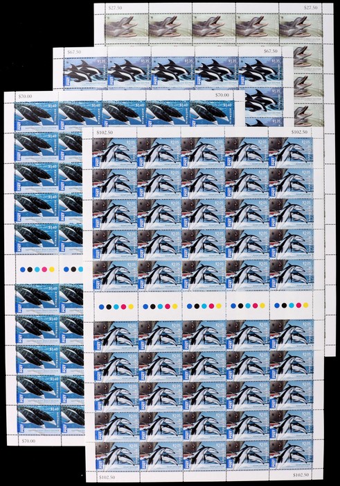 $4.10 M/Sheet imperf blk of 4 M/S from UR cnr of printer's sheet of 16 M/S, marginal markings at right, colour bar & blks at top jumbo margin of 230mm. VF fresh MNH. SG MS3269(var). Retail $45 ea, so $180 for this. (Image1)