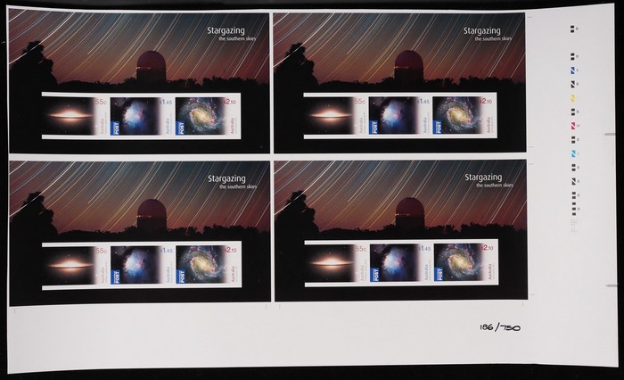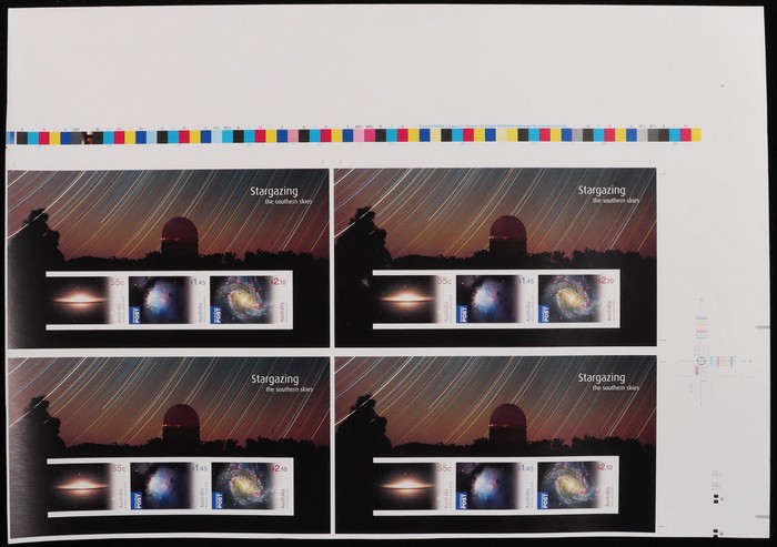2009 Stargazing $4.10 M/Sheet imperf blk of 4 M/S from LL cnr of printer's sheet of 16 M/S, marginal markings at extra wide left & base margins. Superb fresh MNH. SG MS3269(var). Retail $45, so $180+ for this.