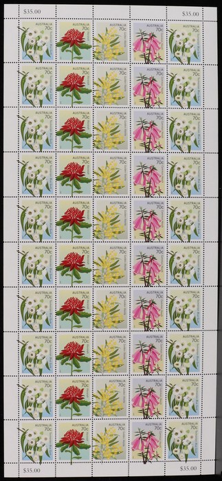 70c set sheet of 50 with setenant strips of 5. VF fresh MNH. SG 4215-19. FV $35 alone. (Image1)