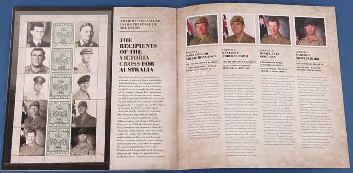 folder (260x260mm) of 2015 Victoria Cross 70c in sheetlets with tabs of all 100 VC winners. VF fresh MNH. FV alone $49. (Image1) (Image2)