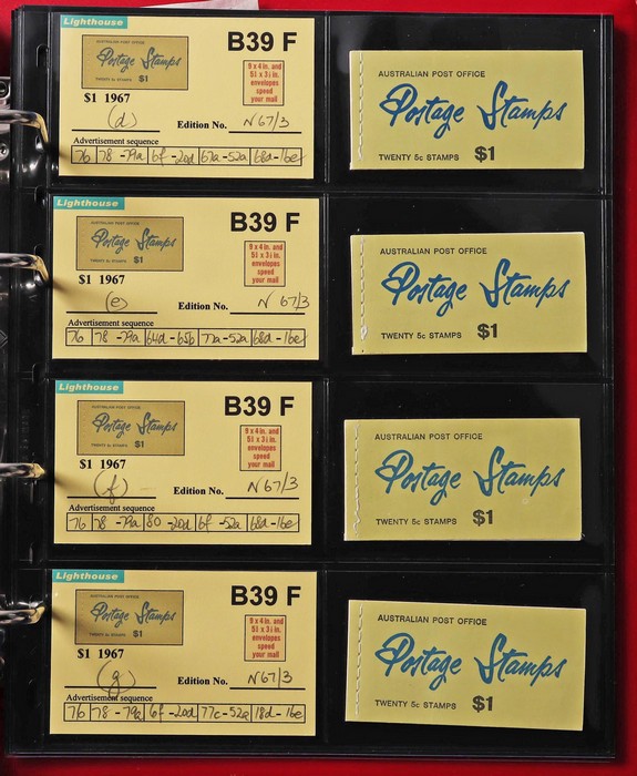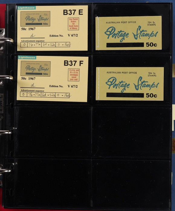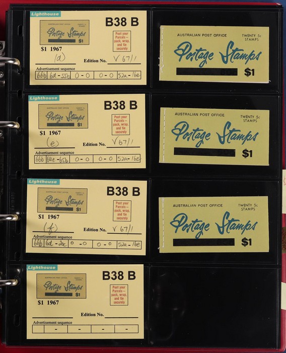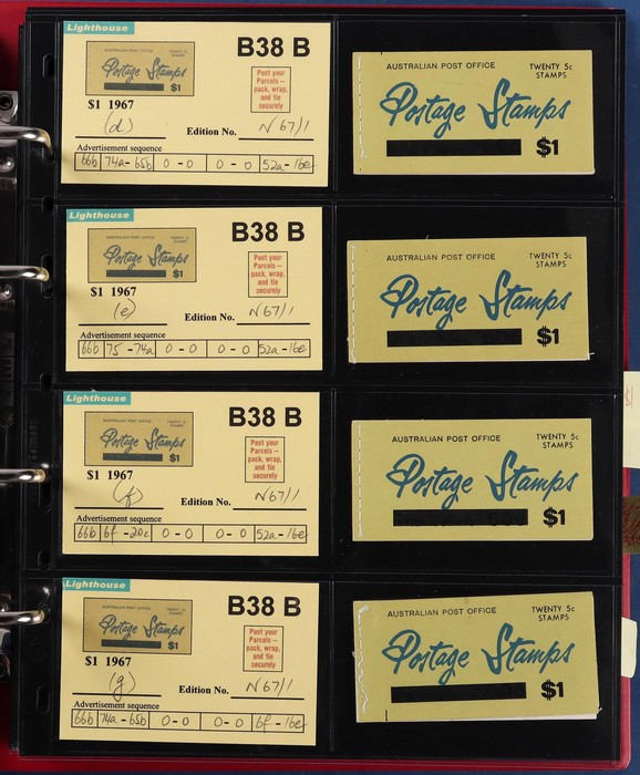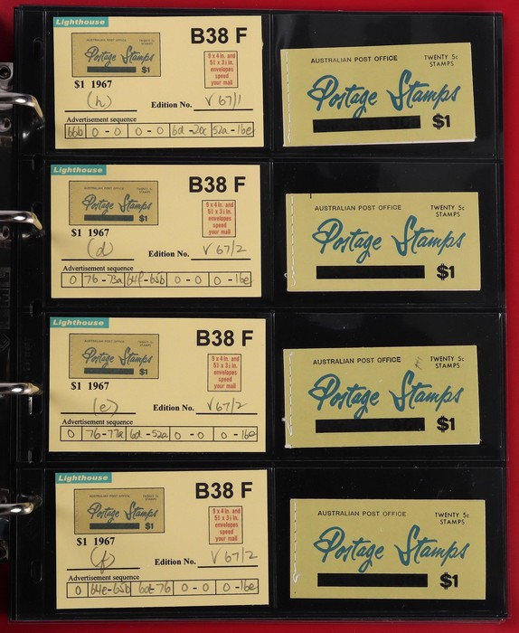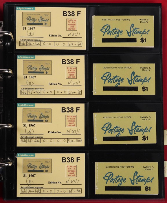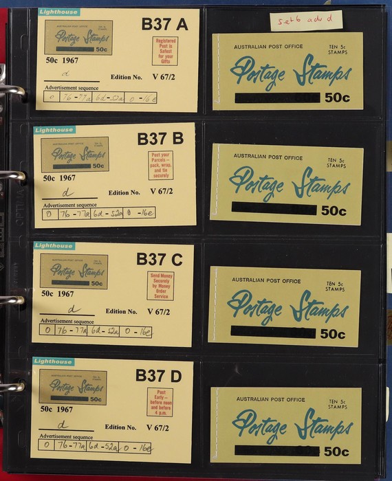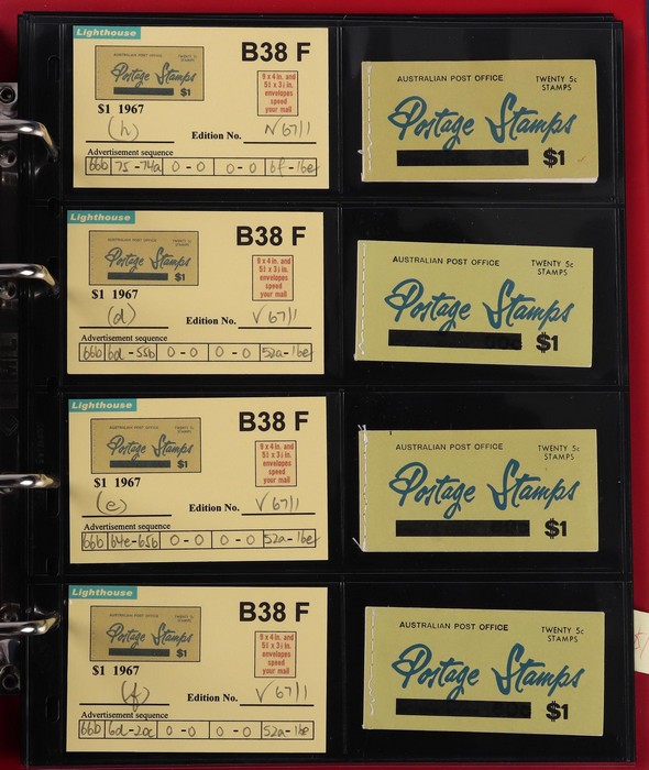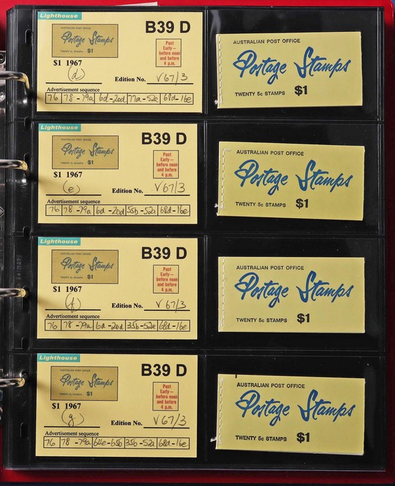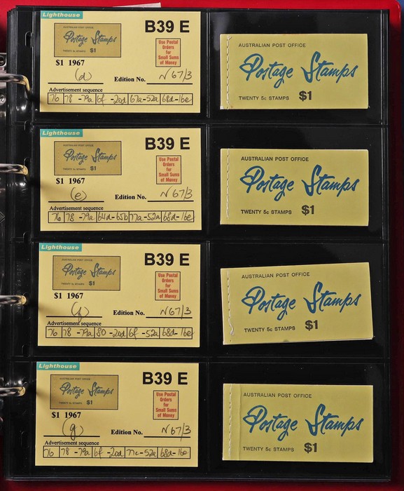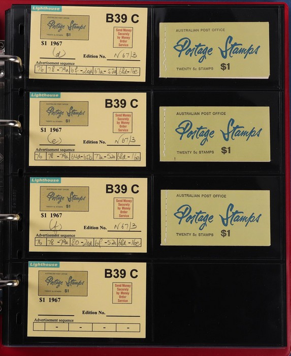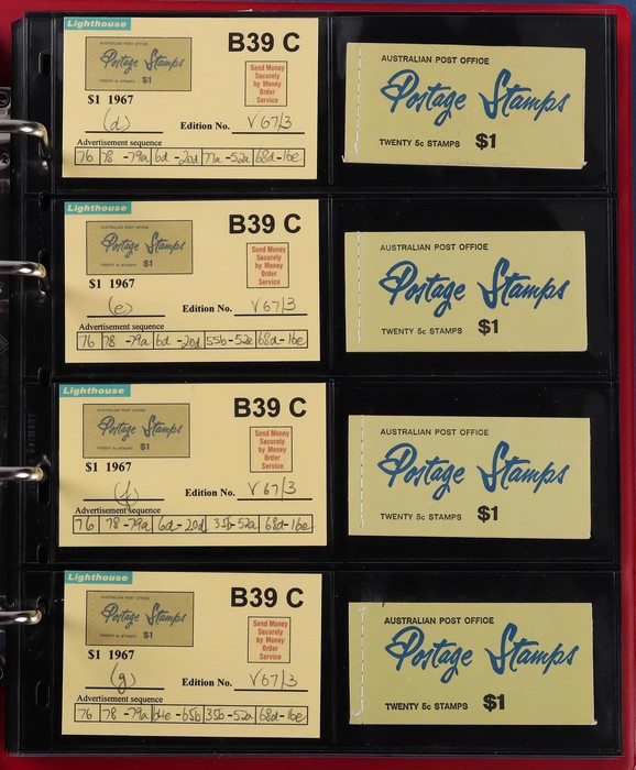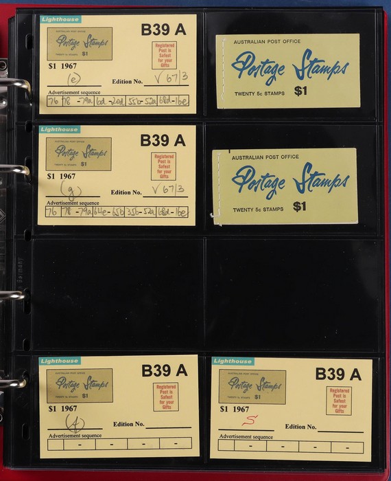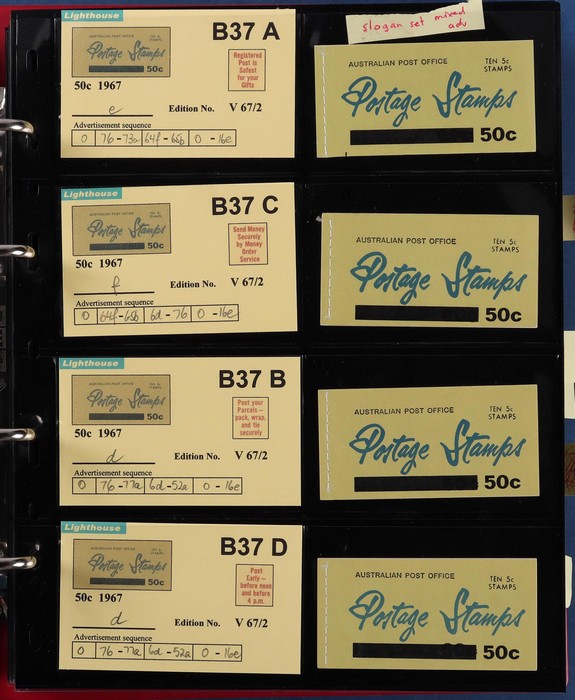 booklets collection with Surch 5c on 4c red with bar opt cover, collection in Lighthouse Booklet Album with slipcase inc sets of 6 slogans with advert type 'd' (2 sets), type 'f' set, & mixed adverts set of 6. Then $1 'bar' opts wide range appears