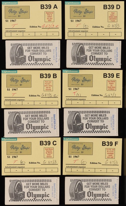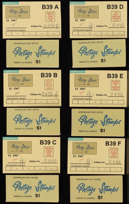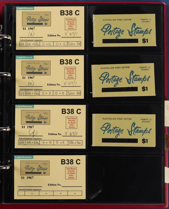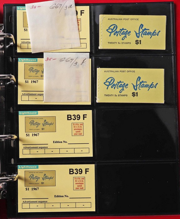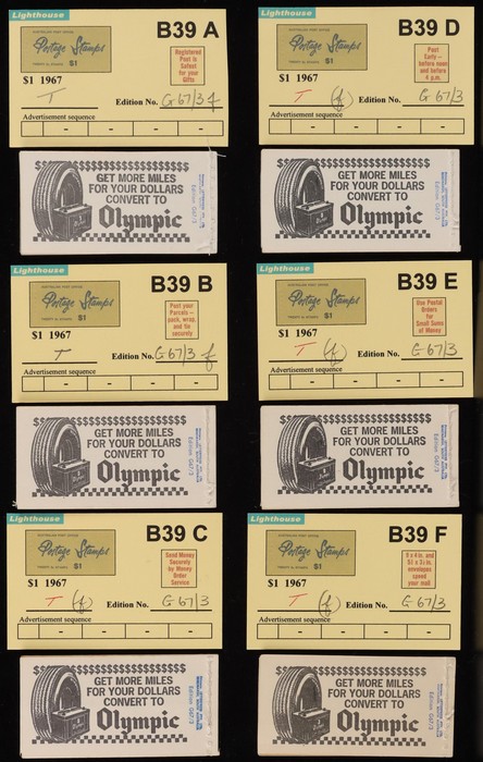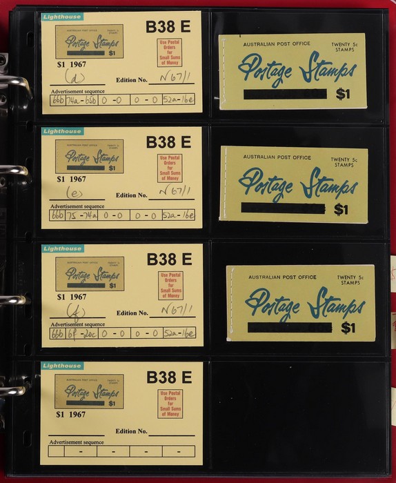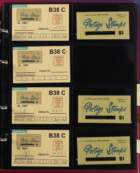 booklets collection with Surch 5c on 4c red 'permanent' cover w/o bar opt collection in Lighthouse Booklet Album with slipcase. Has slogan 'Registered' (6) edition N67/3, 'Post Parcels' (3) V67/3 & a G67/3. Also 'Send Money' (3) N67/3 & V67/3 (4).