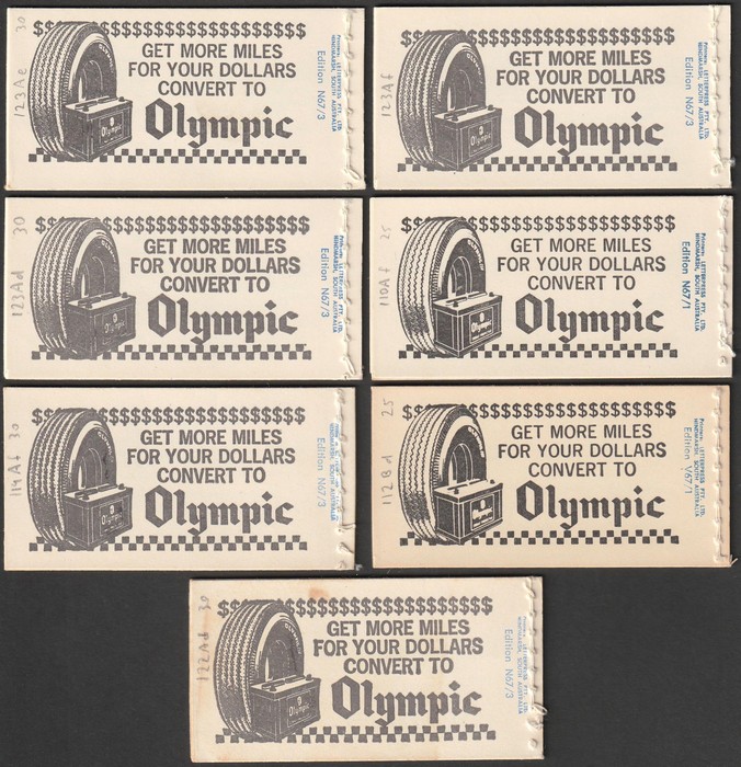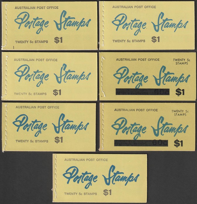 with QEII $1 temporary opt cover (2) & permanent covers (5) with all diff range of adverts. F-VF MNH. SG SB41. Pfr B110Af & B112Bd, B119Af, B122Ad, B123Ad-f cat $200. (7)