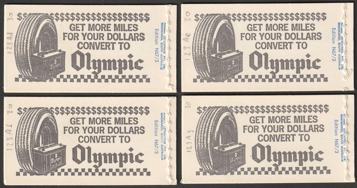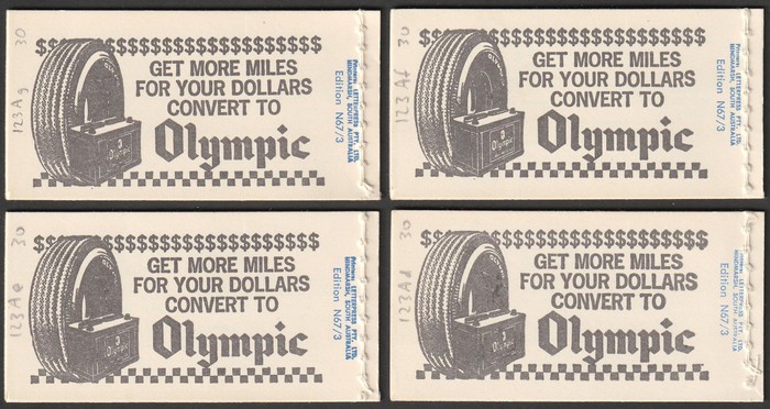 permanent cover, edition N67/3, 4 diff tabs, matching adverts. VF MNH. SG SB41a. Pfr B123Ad-g cat $150. (4). (Image1) (Image2)