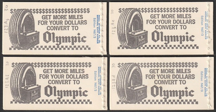 permanent cover, edition N67/3, 4 diff tabs, matching adverts. VF MNH. SG SB41a. Pfr B123Ad-g cat $150. (4). (Image1) (Image2)