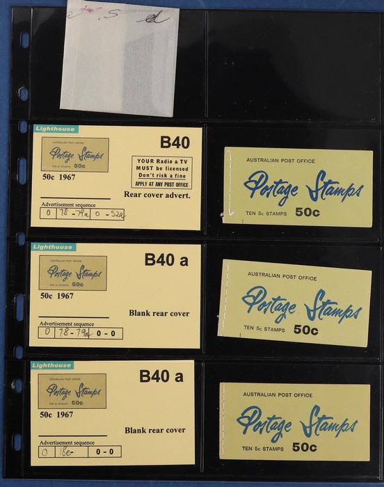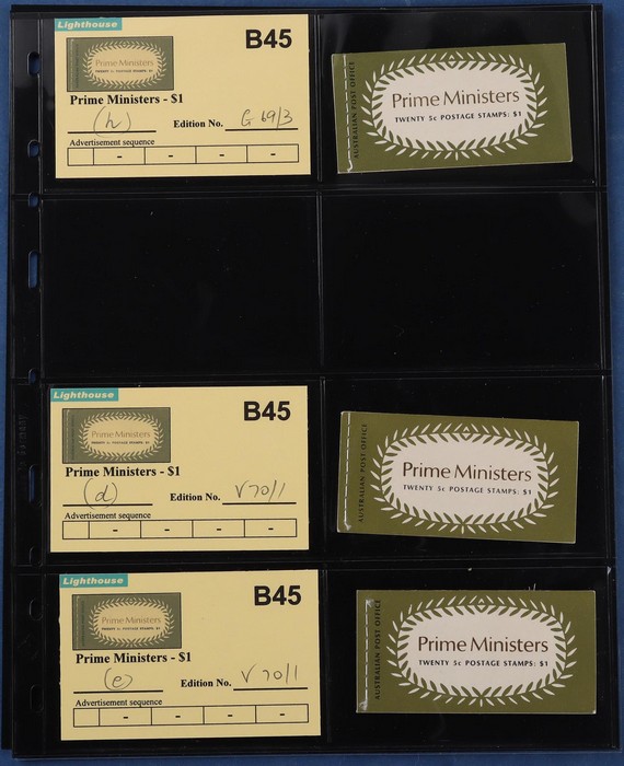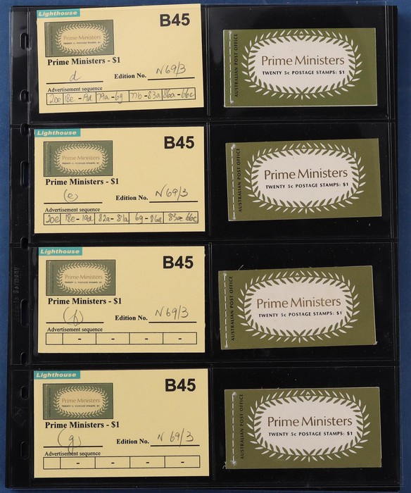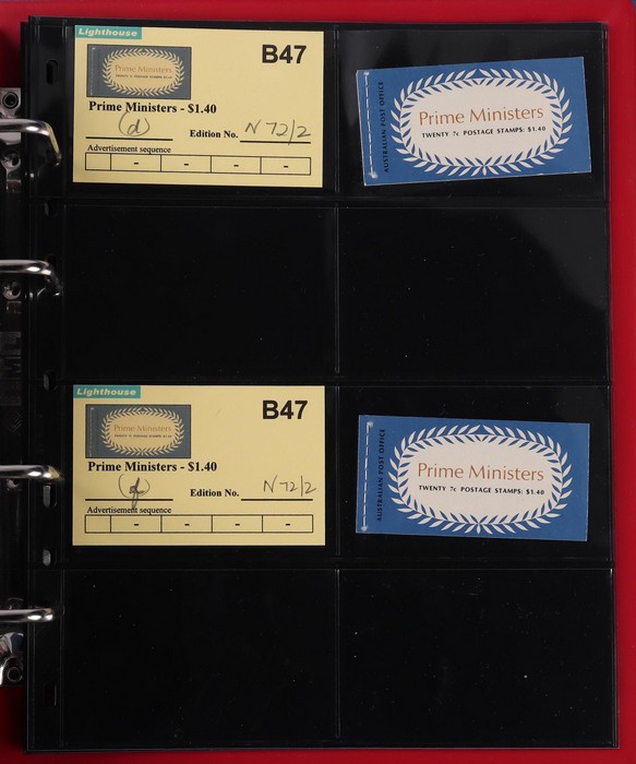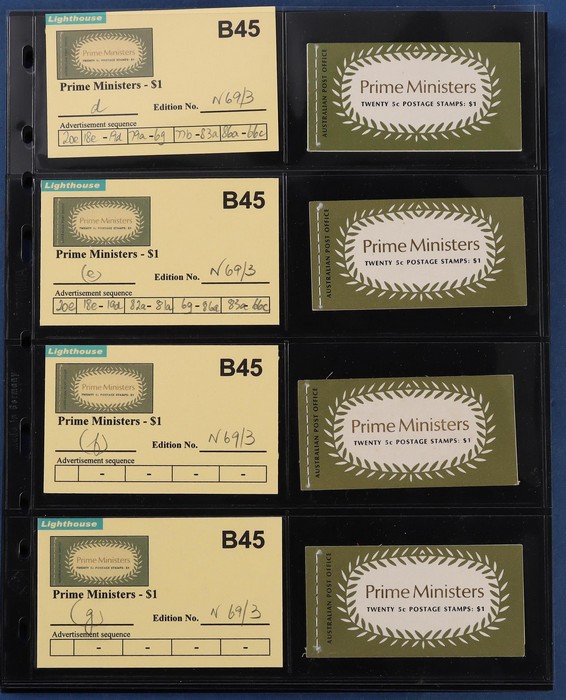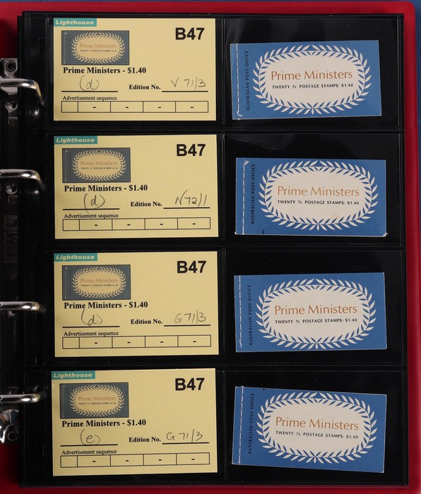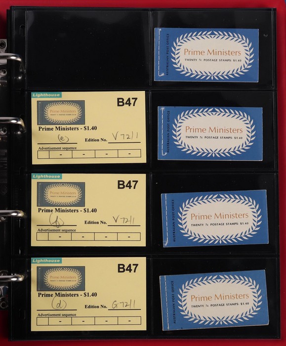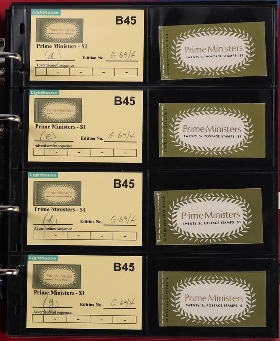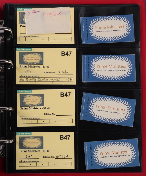 collection inc QEII 5c blue types (23, Pfr cat $1200), 1968 Famous Australians (37, $900+), 1969 PMs (34, $1200+), 1970 Famous Australians (16, $550+) & 1972 PMs (14, $320). Wide range of diff editions & advert inserts. In as new Lighthouse booklet