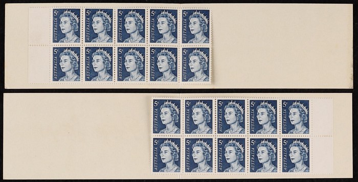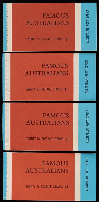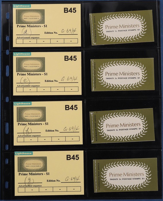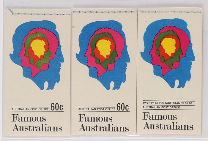 Australians $1.20 with 6c panes, editions G70/3, G71/1, G71/1, G71/2 & w/o edition, all with tropical wax interleaves. VF fresh MNH. SG SB48a cat £325. Pfr B135T, B136AdT, 136GdT, 136GfT, 136JfT cat $650. (5) (Image1) (Image2)