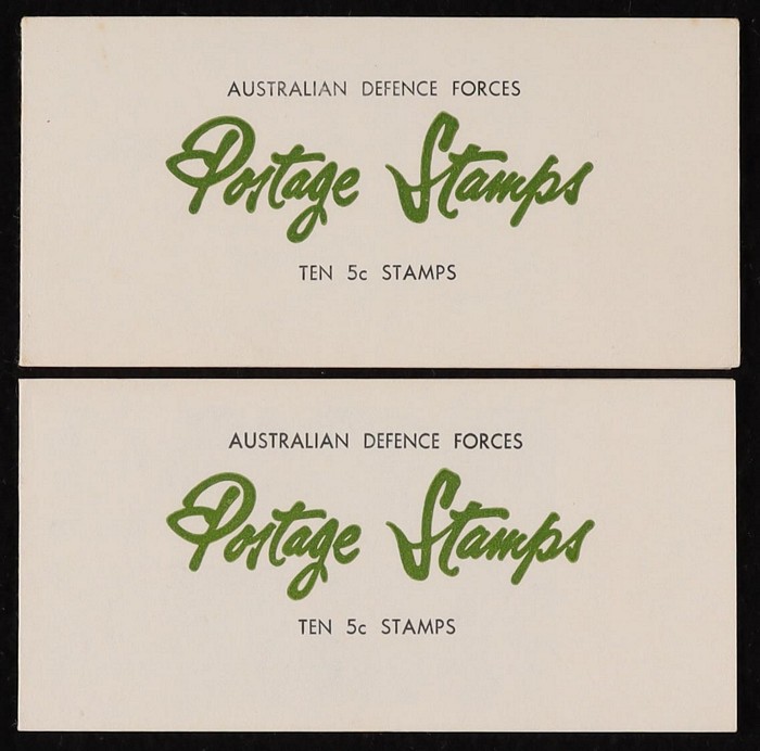 Forces 50c with QEII 5c blue blks of 10 affixed at left or right. VF MNH. SG MB2 cat £100. Pfr B129a & B129b cat $180. (2) (Image1) (Image2)