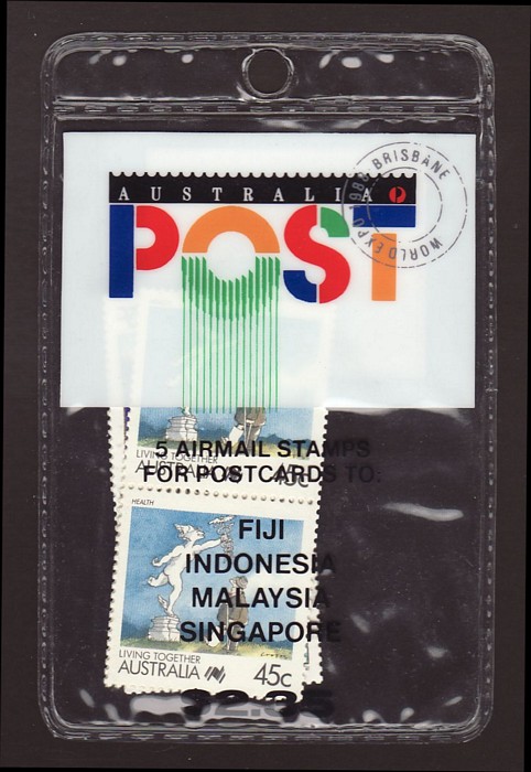 Australia Post $2.35 Pack for Airmail Postage x 5 to Fiji, Indonesia, Malaysia, Singapore. Unopened as issued. Rare. Unlisted Pfr. (Image1)
