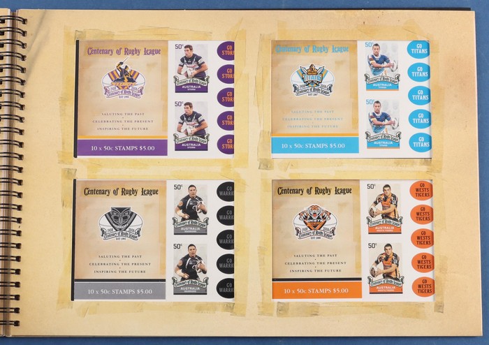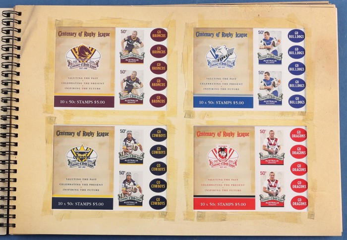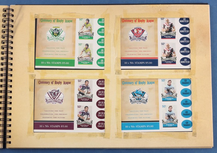 Centenary booklet collection in PO Album, comp set of $5 (16) plus $10 with all teams. VF fresh MNH. SG SB268-84 cat £118, Pfr B359-75 cat £176. FV alone $90. (17).