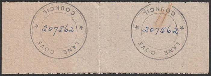 Coupon New South Wales 44 Gallon magenta series B tete-beche vert pair. VF UN, sl rev stain, with Lane Cove Council 'security' cachets on reverse. (Image1) (Image2)