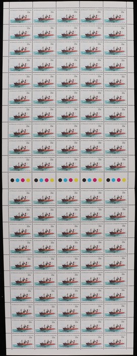 5c sheet of 100. VF fresh MNH, some separation. SG 11 cat £200. (Image1)