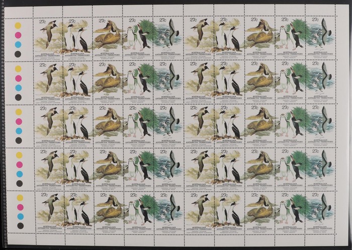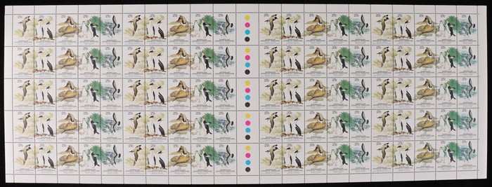 1983 Wildlife 27c, & 1984 Treaty 27c panes of 50. VF fresh MNH. FV alone $40. SG 53, 55-60 cat £60. Retail $80. (3 sheets). (Image1) (Image2)